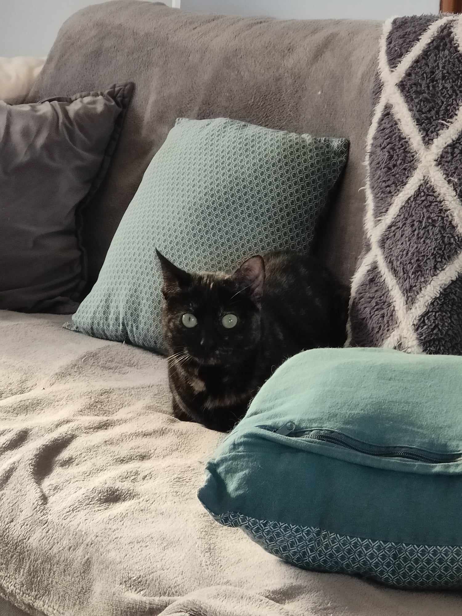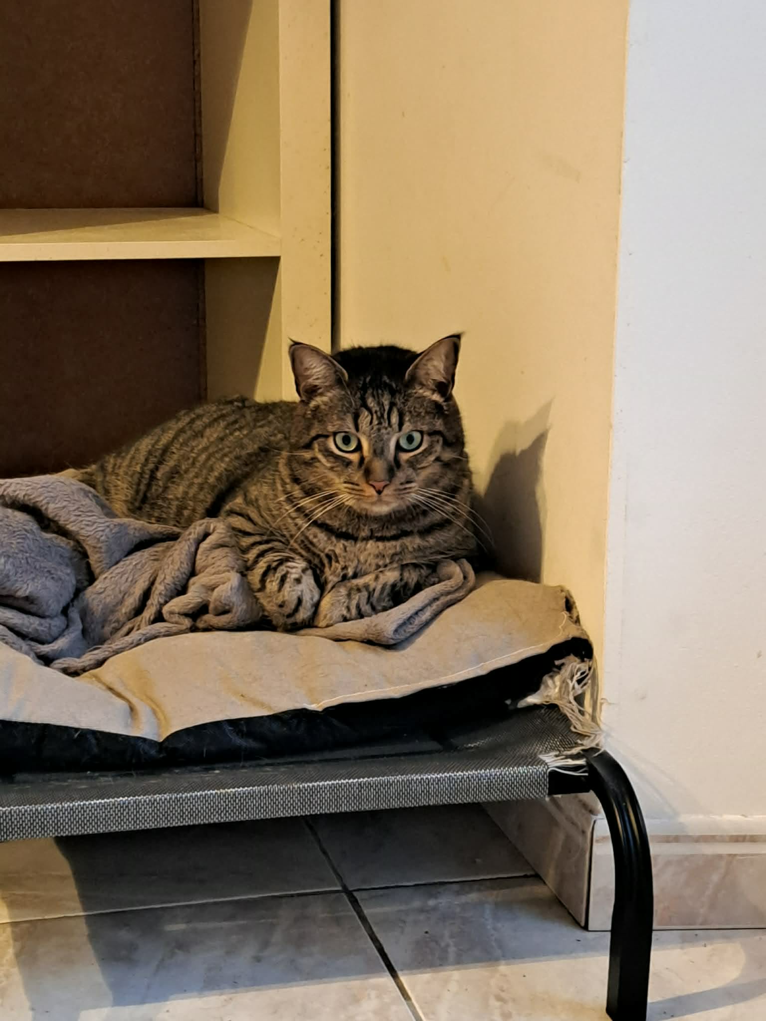 Mounette est une ancienne chatte de la rue, peut être abandonnée un jour, peut être née dans la rue, nous ne saurons jamais comment elle a pu finir dans l’état où nous l’avons récupérée.